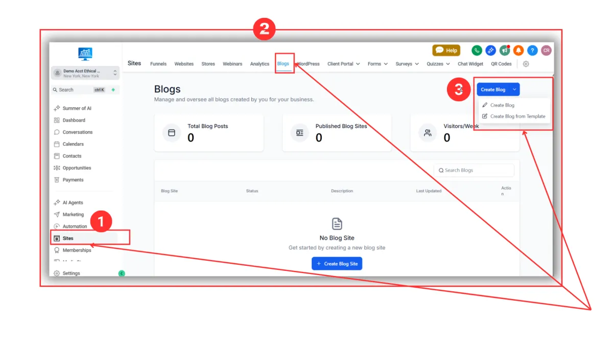Step 1: Go to Sites> Client Portal > Blogs> Create Blog