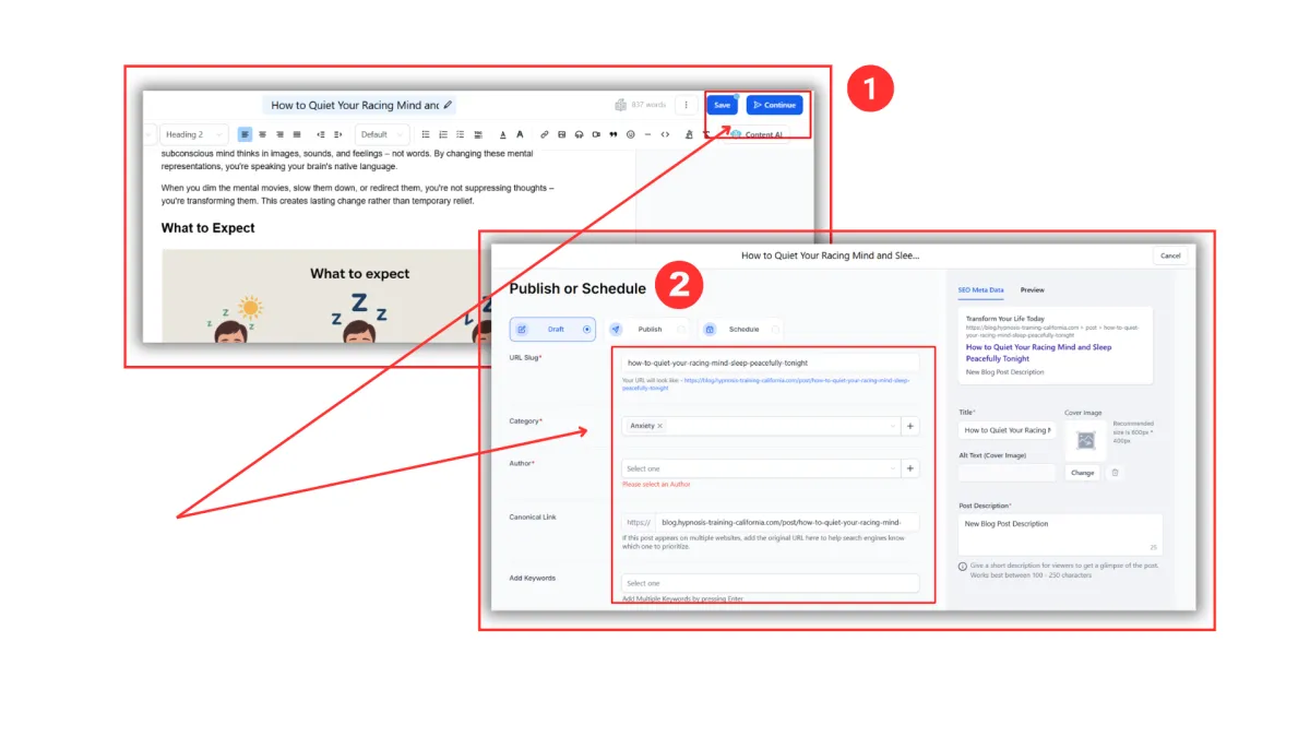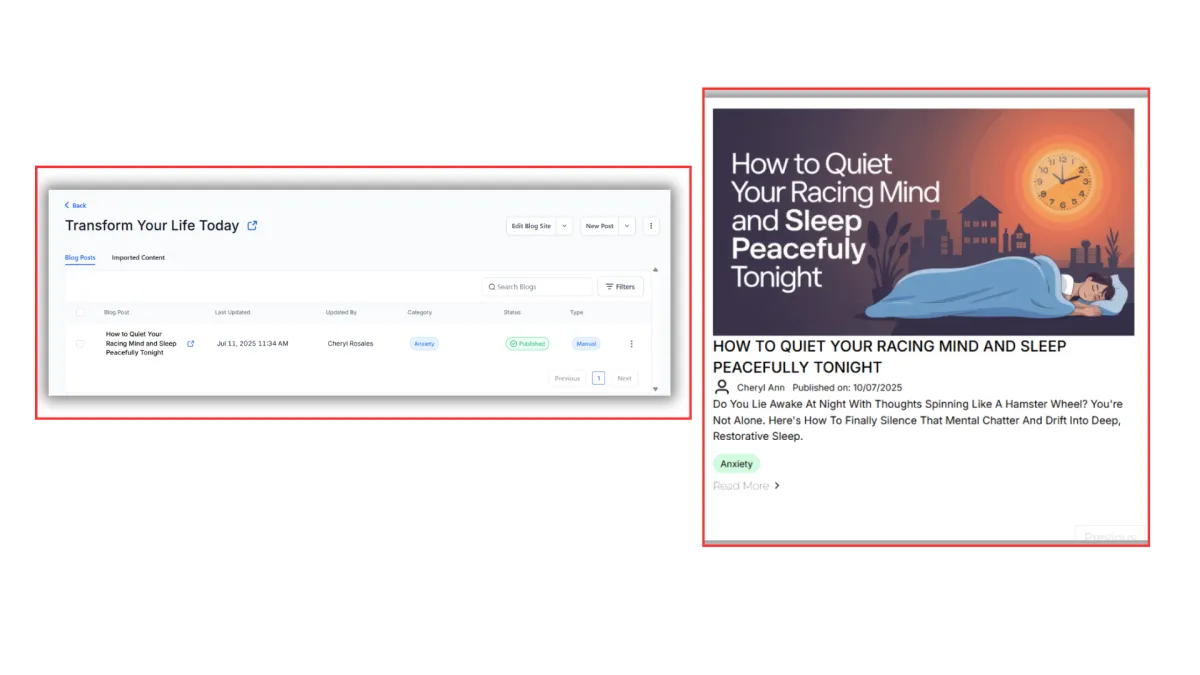 Congratulations! Your blog is now live and ready for content. This final step opens up the blog editor where you can write, format, and publish your posts. From here, you can share your expertise, connect with your ideal clients, and start building your authority in your field.
